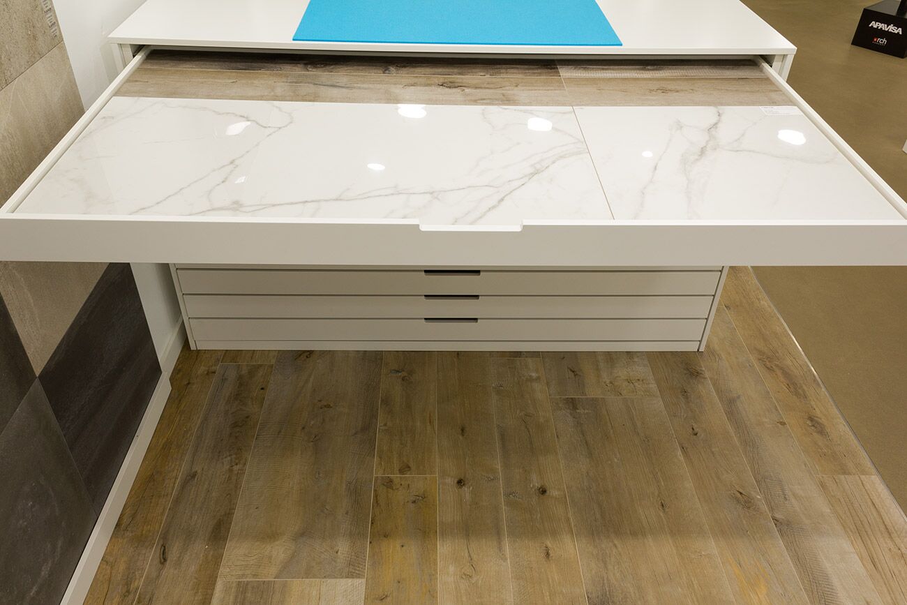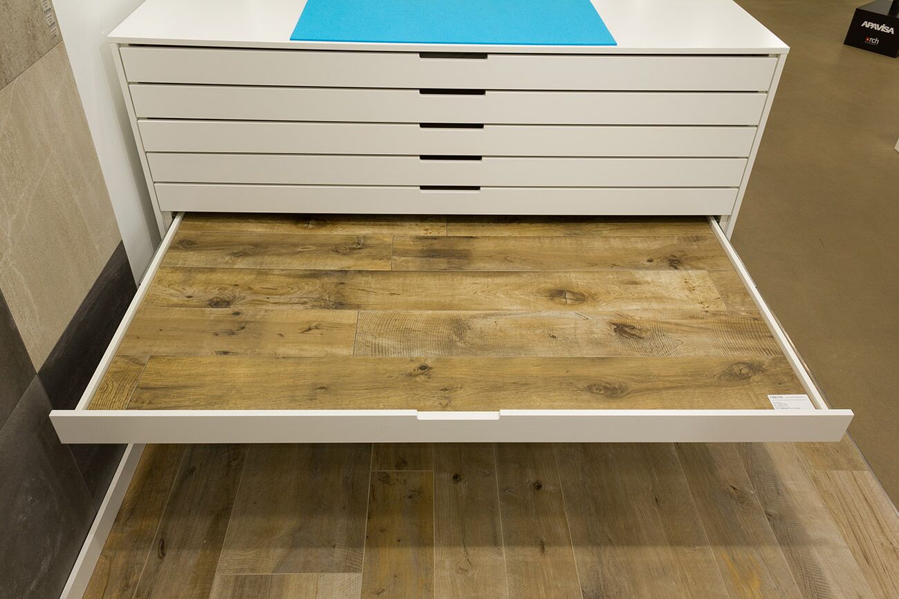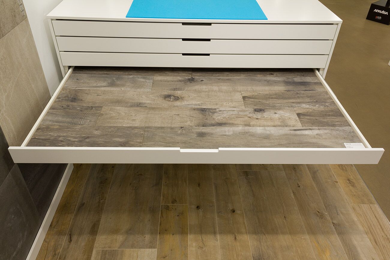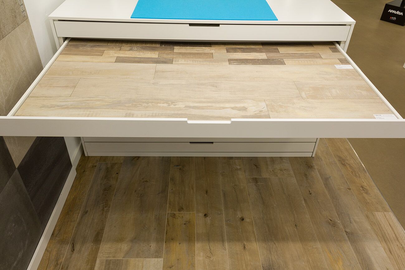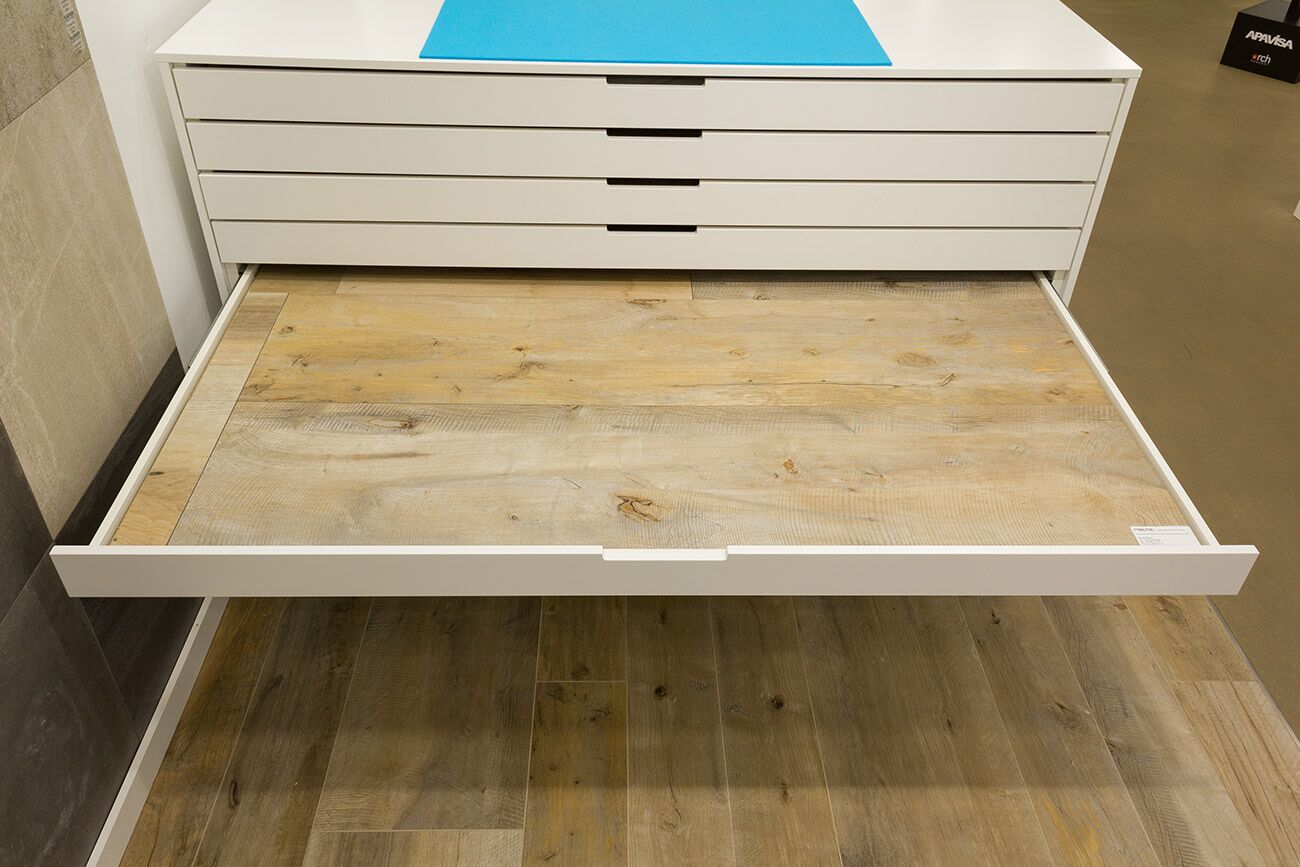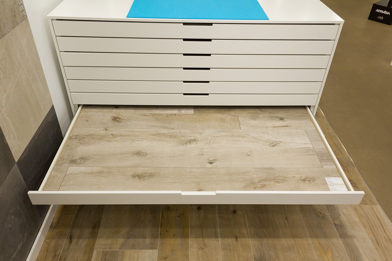 Hier sehen Sie die Übersicht des Musterschranks. Wenn Sie diese Seite weiter nach unten scrollen, sehen Sie jede einzelne Musterschublade und weiteren Informationen zu den gezeigten Fliesen. Weitere Informationen oder alternative Fliesen präsentieren wir Ihnen gern bei einem persönlichen Beratungsgespräch. -