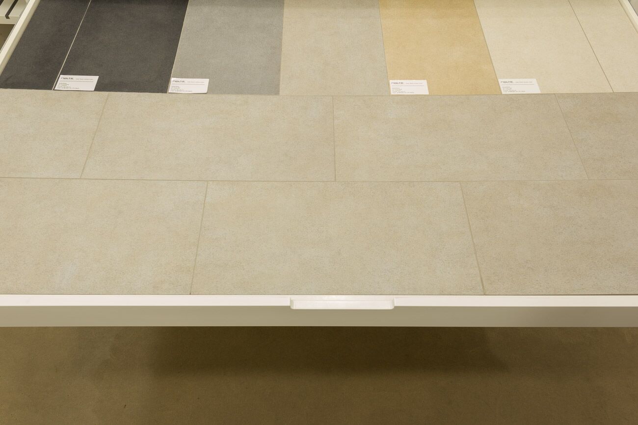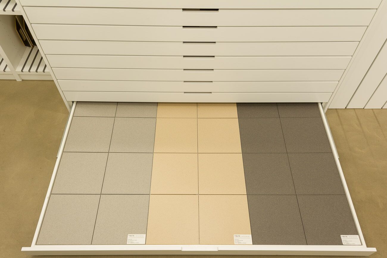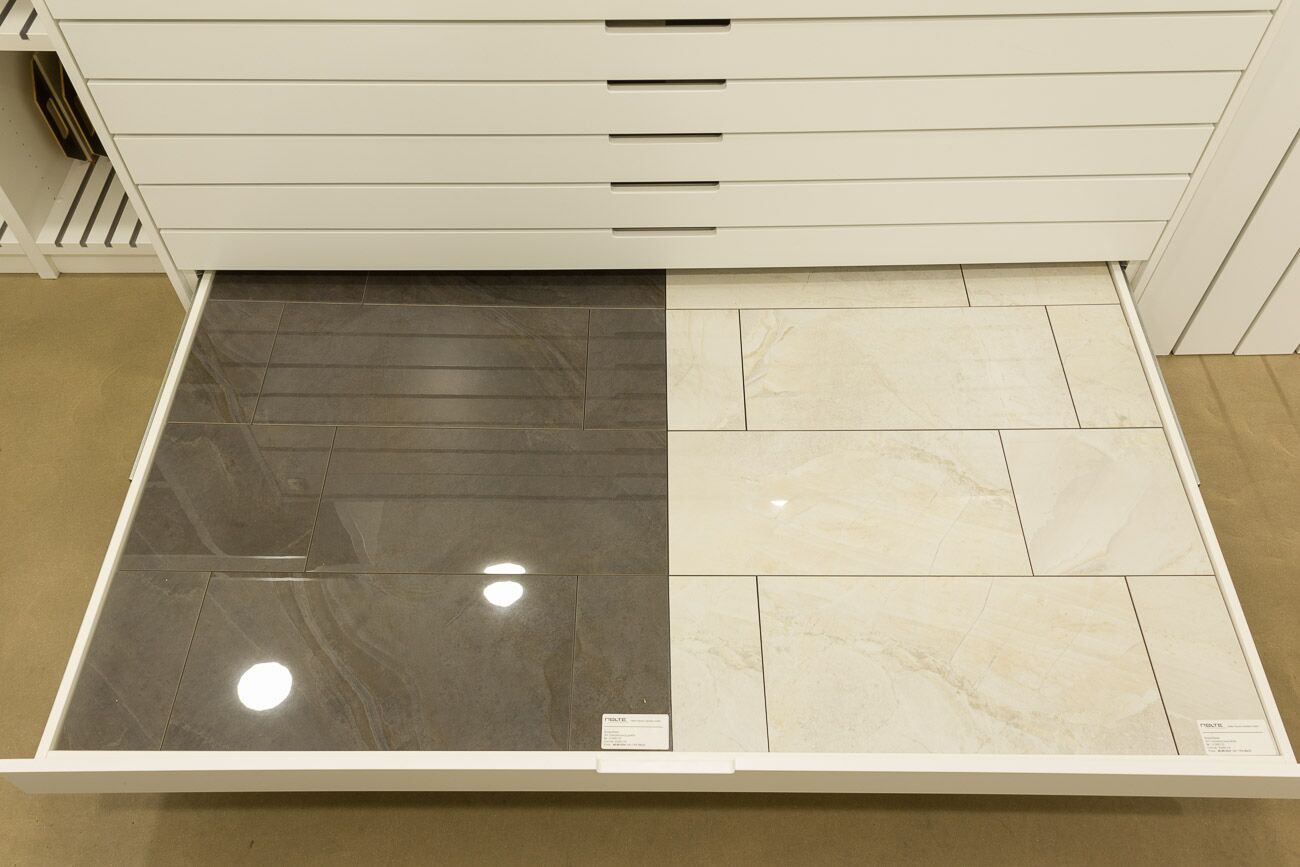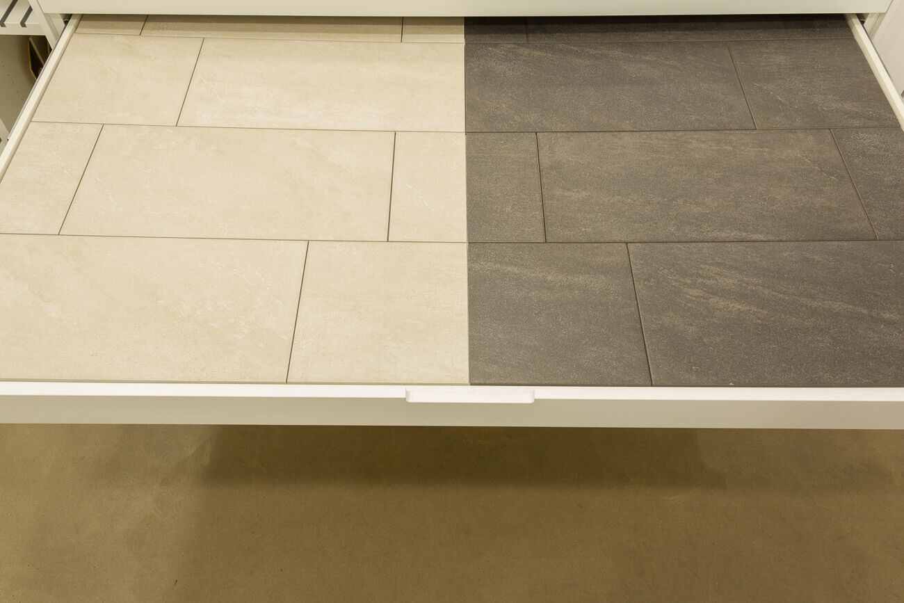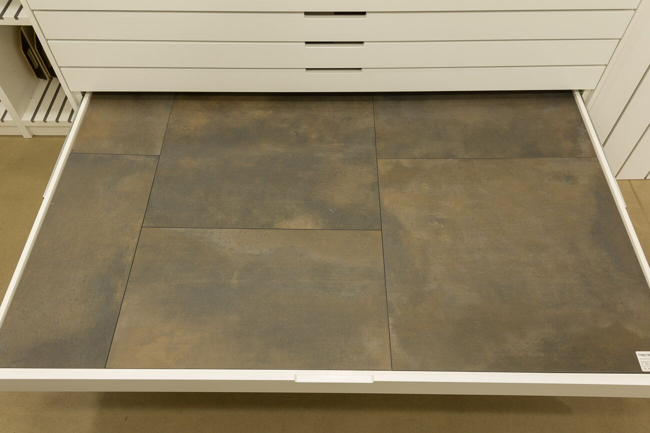 Hier sehen Sie die Übersicht des Musterschranks. Wenn Sie diese Seite weiter nach unten scrollen, sehen Sie jede einzelne Musterschublade und weiteren Informationen zu den gezeigten Fliesen. Weitere Informationen oder alternative Fliesen präsentieren wir Ihnen gern bei einem persönlichen Beratungsgespräch. -
