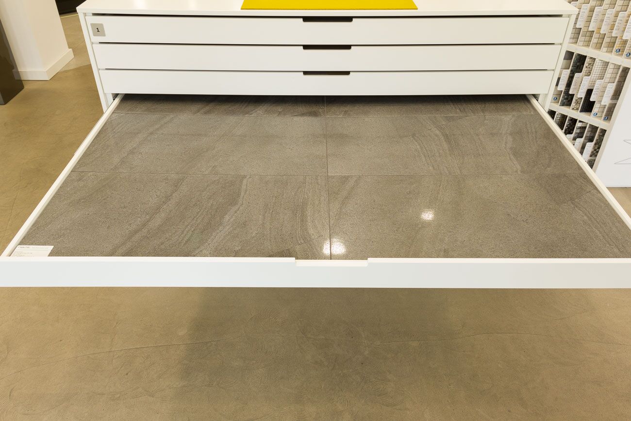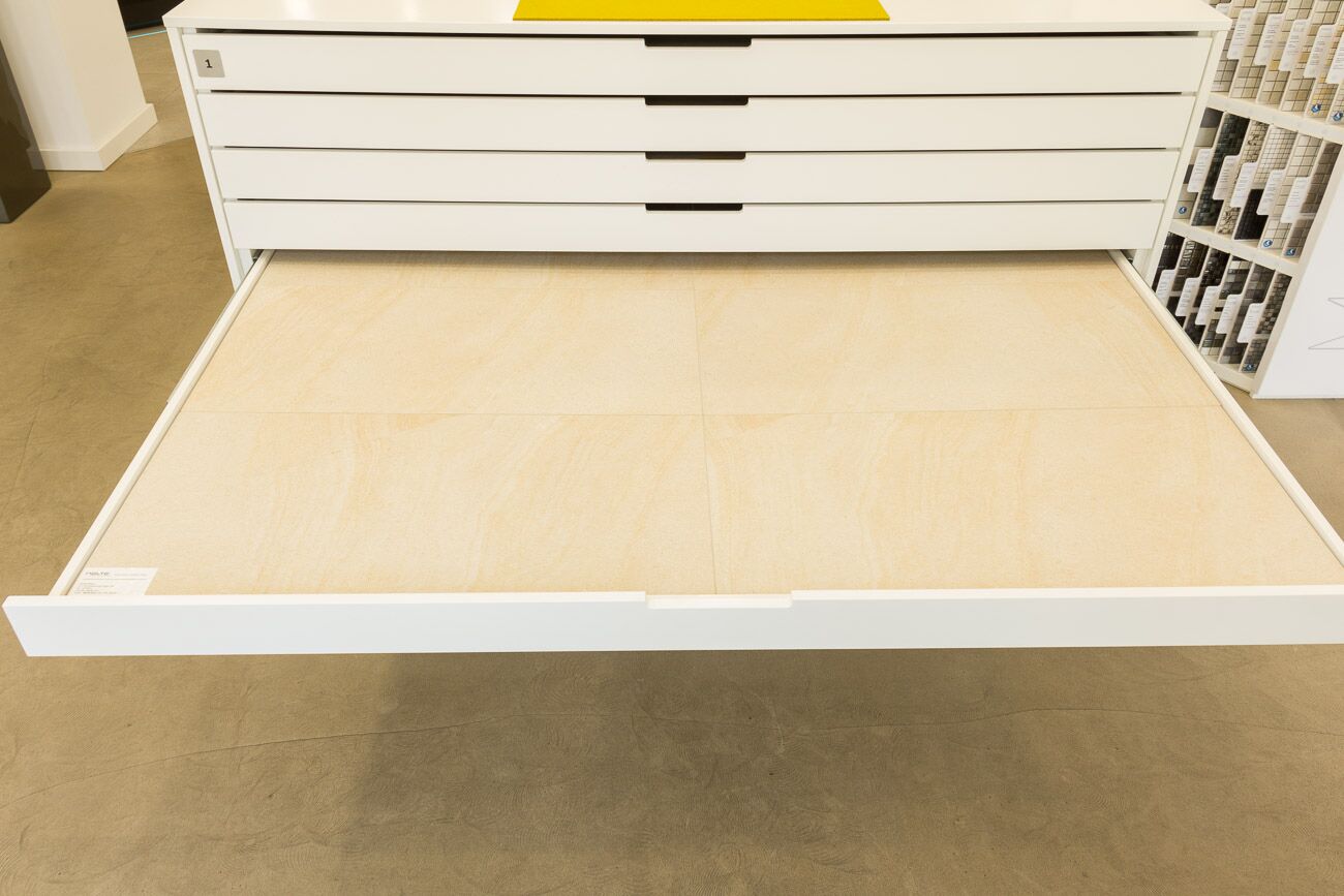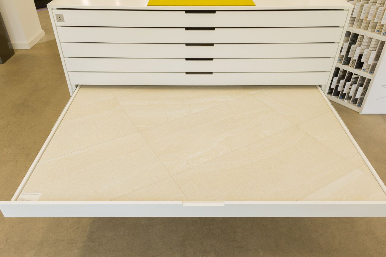 Hier sehen Sie die Übersicht des Musterschranks. Wenn Sie diese Seite weiter nach unten scrollen, sehen Sie jede einzelne Musterschublade und weiteren Informationen zu den gezeigten Fliesen. Weitere Informationen oder alternative Fliesen präsentieren wir Ihnen gern bei einem persönlichen Beratungsgespräch. -